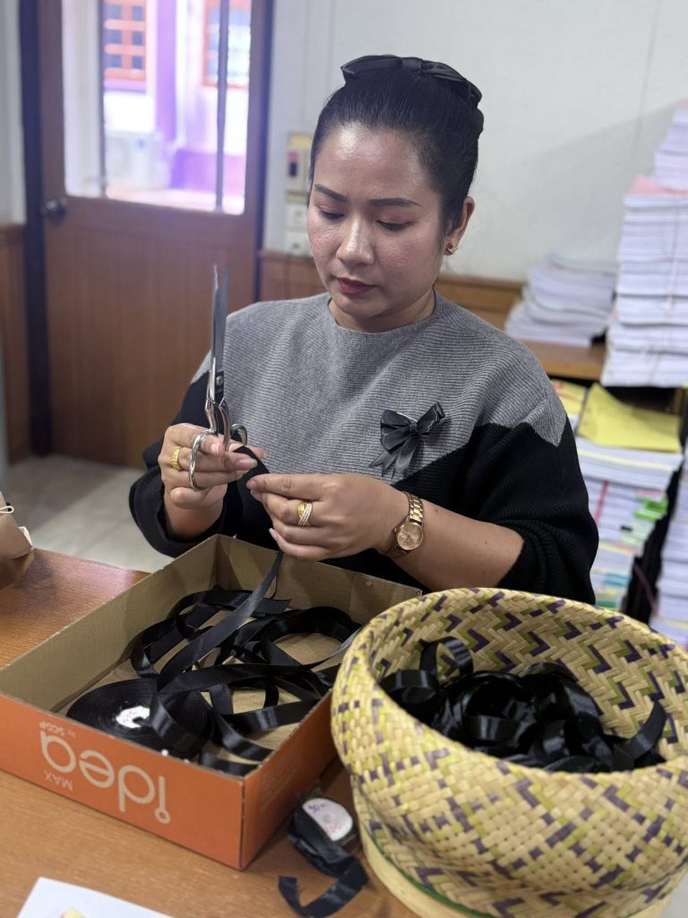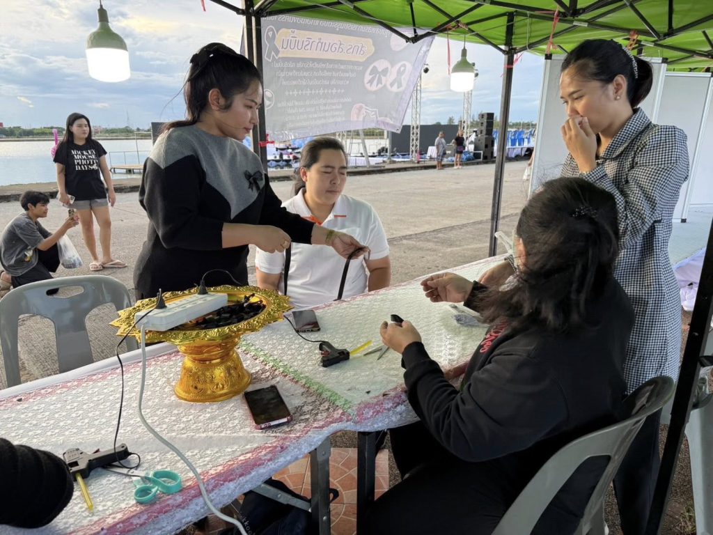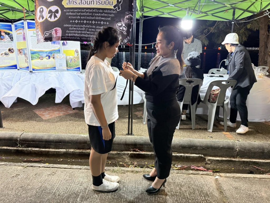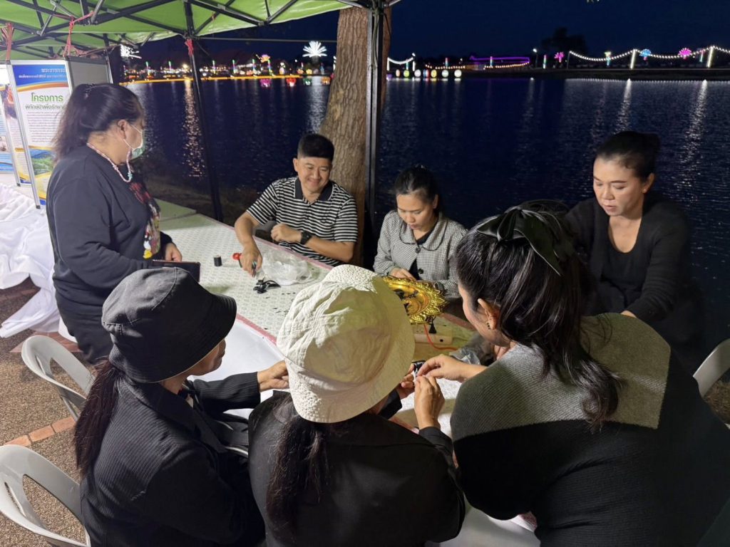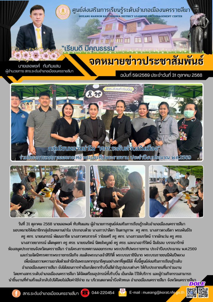 วันที่ 31 ตุลาคม 2568 นายเลอพงศ์ ทับทิมแสน ผู้อำนวยการศูนย์ส่งเสริมการเรียนรู้ระดับอำเภอเมืองนครราชสีมา มอบหมายให้สมาชิกกลุ่มโซนหลานย่าโม ประกอบด้วย นางสาวปาลิดา จินดานุภาพ ครู ศกร. นางสาวดวงธิดา พรมพันธ์ใจ ครู ศกร. นายณกรณ์ พัฒนจารีต นางสาวศรสวรรค์ วาไชยศรี ครู ศกร. นางสาวอมรรัตน์ รากผักแว่น ครู ศรช. นางสาวชยาภรณ์ เด็ดพุดซา ครู ศรช. นายธนรัตน์ นิตยไพบูลย์ ครู ศรช. และนางอารีรัตน์ ฉิมไธสง บรรณารักษ์ห้องสมุดประชาชนจังหวัดนครราชสีมา ร่วมโครงการเทศกาลลอยกระทง พระประทีปพระราชทาน ประจำปีงบประมาณ พ.ศ.2569 และร่วมจัดนิทรรศการพระราชกรณียกิจ สมเด็จพระนางเจ้าสิริกิติ์ พระบรมราชินีนาถ พระบรมราชชนนีพันปีหลวงเพื่อน้อมถวายความอาลัยด้วยสำนึกในพระมหากรุณาธิคุณอย่างหาที่สุดมิได้ ทั้งนี้ศูนย์ส่งเสริมการเรียนรู้ระดับอำเภอเมืองนครราชสีมา ยังได้สอนการทำเข็มกลัดจากริบบิ้นสีดำในรูปแบบต่างๆ ให้กับประชาชนที่มาร่วมงาน โดยทางสกร.ระดับอำเภอเมืองนครราชสีมา ได้จัดเตรียมอุปกรณ์ทั้งริบบิ้น เข็มกลัด ไว้ให้บริการ และผู้ร่วมกิจกรรมสามารถนำชิ้นงานที่ทำเสร็จแล้วกลับไปได้โดยไม่เสียค่าใช้จ่าย ณ บริเวณตลาดน้ำบึงหัวทะเล อำเภอเมืองนครราชสีมา จังหวัดนครราชสีมา