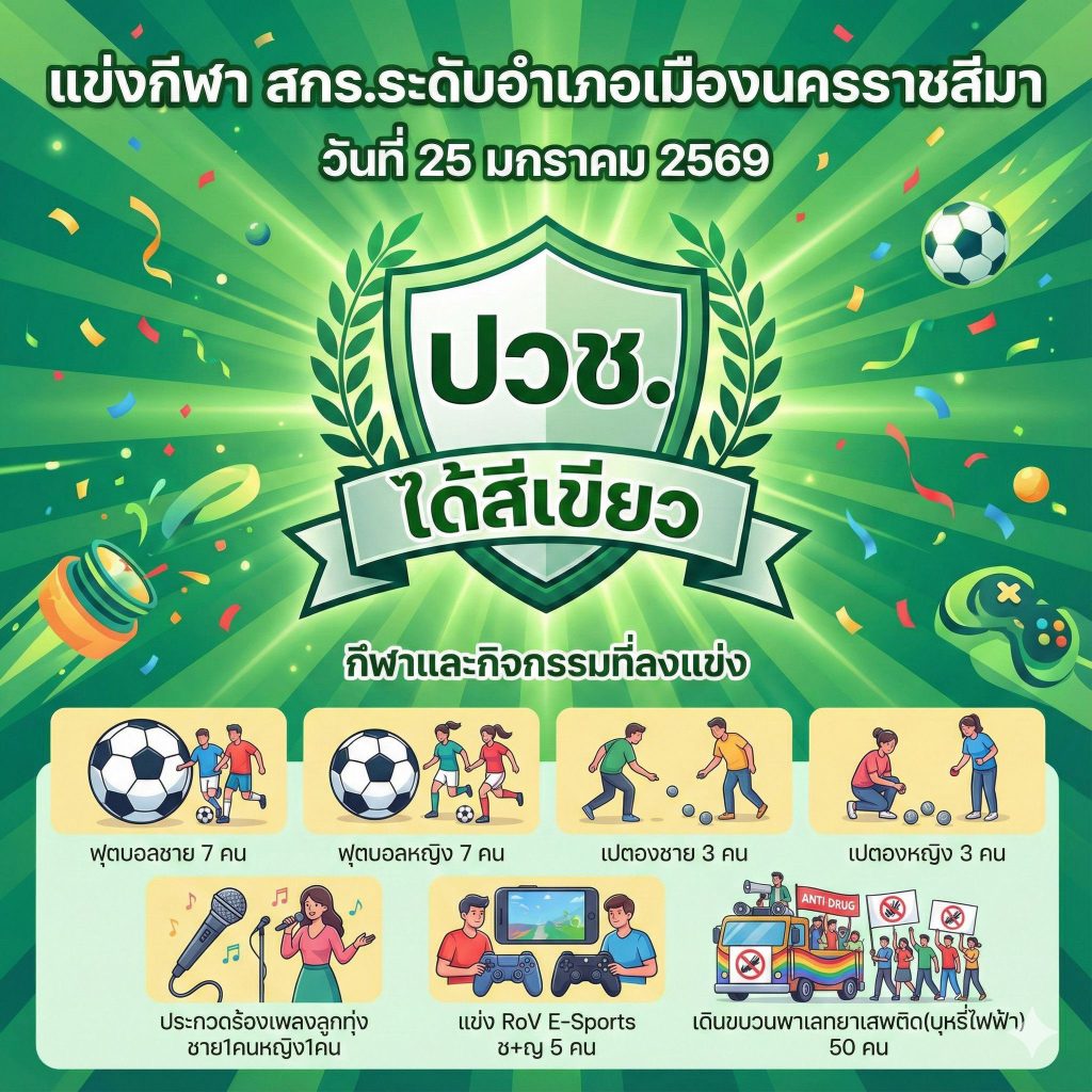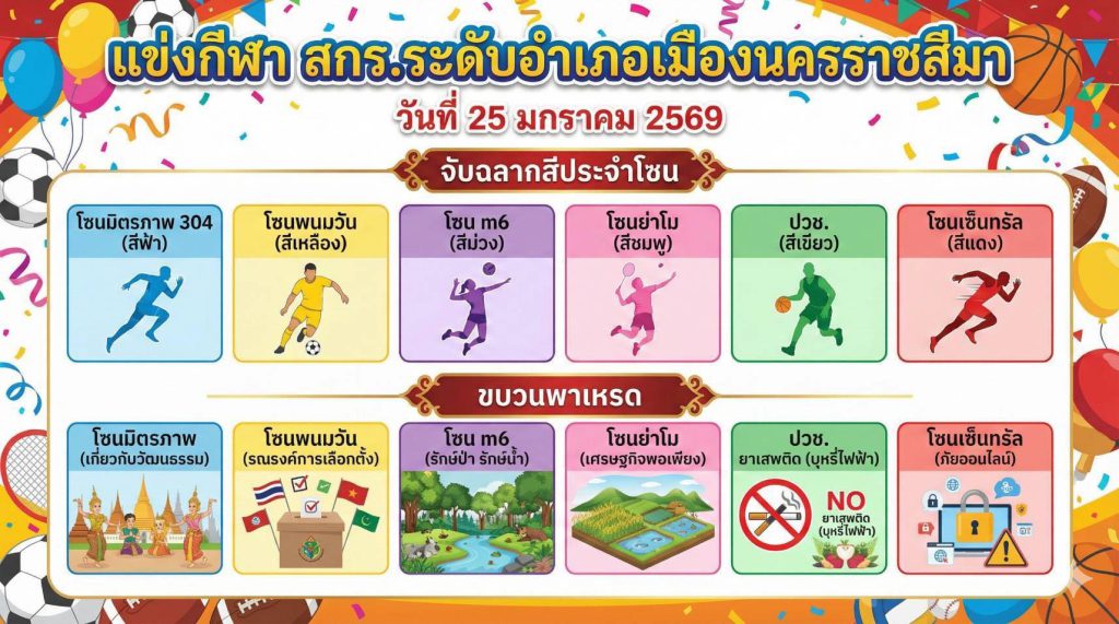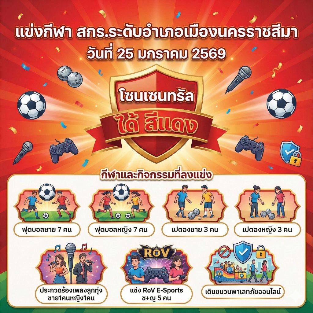 แนะแนวเรื่อง สกร.ระดับอำเภอเมืองนครราชสีมา จัดกิจกรรมเสริมหลักสูตรอาชีพระยะสั้น “น้ำยาล้างจานทำเอง” บรรเทาผลกระทบผู้ประสบภัยชายแดนจังหวัดศรีสะเกษ ณ ศูนย์พักพิงชั่วคราว อำเภอเมืองศรีสะเกษ จังหวัดศรีสะเกษ ครูศูนย์การเรียนรู้ระดับตำบลในเมืองและครูศูนย์การเรียนรู้ชุมชนตำบลในเมือง เข้าร่วมโครงการประชาคมส่งเสริมสุขภาพชุมชนชลประทาน ประจำปีงบประมาณ 2569