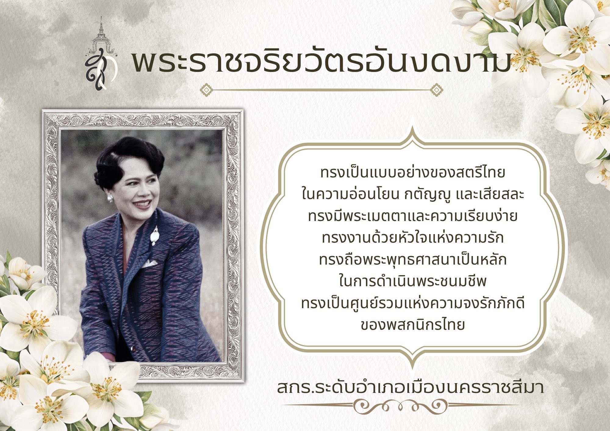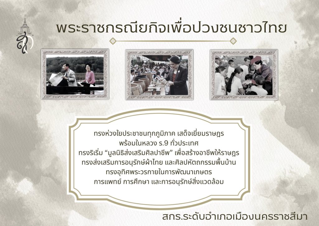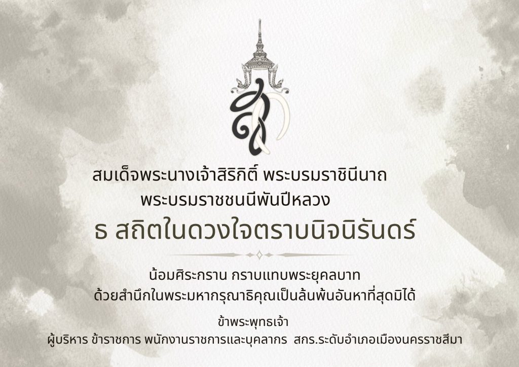 แนะแนวเรื่อง ธ สถิตในดวงใจตราบนิจนิรันดร์สมเด็จพระนางเจ้าสิริกิติ์ พระบรมราชินีนาถ พระบรมราชชนนีพันปีหลวง สกร.ระดับอำเภอเมืองนครราชสีมา ร่วมยืนสงบนิ่งถวายความอาลัย แด่สมเด็จพระนางเจ้าสิริกิติ์ พระบรมราชินีนาถ พระบรมราชชนนีพันปีหลวง พระผู้เสด็จสู่สวรรคาลัย เพื่อน้อมเกล้าน้อมกระหม่อมถวายความอาลัยและรำลึกในพระมหากรุณาธิคุณอันหาสุดมิได้