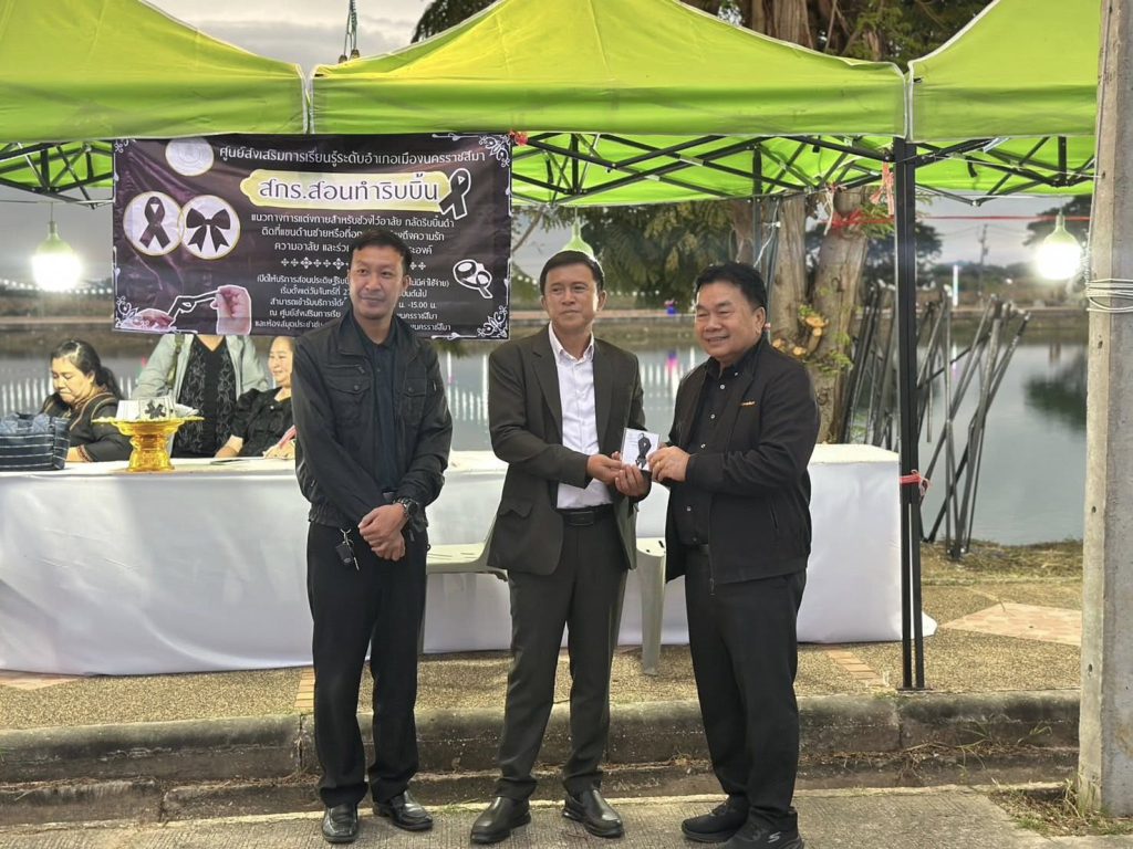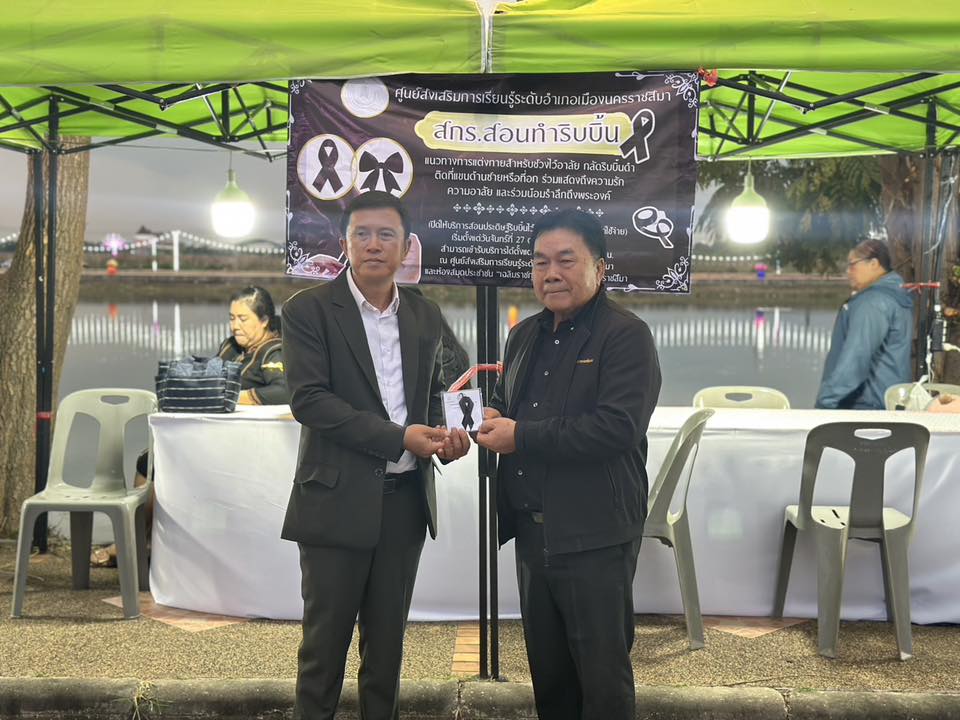 วันที่ 30 ตุลาคม 2568 นายเลอพงศ์ ทับทิมแสน ผู้อำนวยการศูนย์ส่งเสริมการเรียนรู้ระดับอำเภอเมืองนครราชสีมา พร้อมด้วยข้าราชการครู ครูศูนย์การเรียนรู้ และบุคลากรทางการศึกษา สกร.ระดับอำเภอเมืองนครราชสีมา ร่วมพิธีเปิดโครงการเทศกาลลอยกระทง พระประทีปพระราชทาน ประจำปีงบประมาณ พ.ศ.2569 และร่วมจัดนิทรรศการพระราชกรณียกิจสมเด็จพระนางเจ้าสิริกิติ์ พระบรมราชินีนาถ พระบรมราชชนนีพันปีหลวง เพื่อน้อมถวายความอาลัยด้วยสำนึกในพระมหากรุณาธิคุณอย่างหาที่สุดมิได้ โดยมีวัชรพล โตมรศักดิ์ อดีตที่ปรึกษารัฐมนตรีช่วยว่าการกระทรวงศึกษาธิการ เป็นประธานในพิธีเปิด ทั้งนี้ศูนย์ส่งเสริมการเรียนรู้ระดับอำเภอเมืองนครราชสีมา ได้สอนการทำเข็มกลัดจากริบบิ้นสีดำในรูปแบบต่างๆ ให้กับประชาชนที่มาร่วมงาน โดยทาง สกร.ระดับอำเภอเมืองนครราชสีมา ได้จัดเตรียมอุปกรณ์ทั้งริบบิ้น เข็มกลัด ไว้ให้บริการและผู้ร่วมกิจกรรมสามารถนำชิ้นงานที่ทำเสร็จแล้วกลับไปได้โดยไม่เสียค่าใช้จ่าย ณ บริเวณตลาดน้ำบึงหัวทะเล ตำบลหัวทะเล อำเภอเมืองนครราชสีมา จังหวัดนครราชสีมา