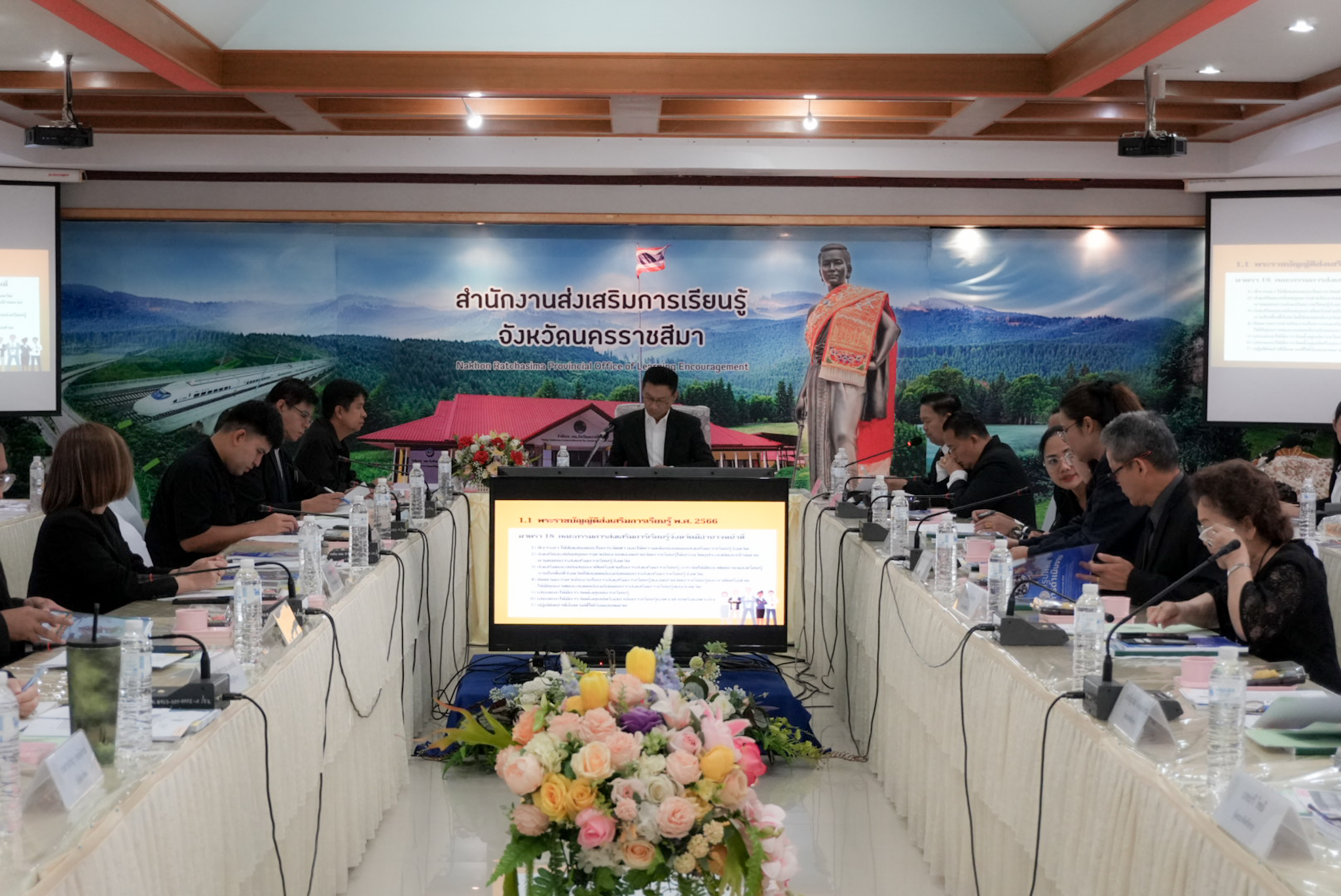 วันที่ 7 พฤศจิกายน 2568 นายเลอพงศ์ ทับทิมแสน ผู้อำนวยการศูนย์ส่งเสริมการเรียนรู้ระดับอำเภอเมืองนครราชสีมาร่วมประชุมคณะกรรมการส่งเสริมการเรียนรู้จังหวัดนครราชสีมา โดยมีนายวิจิตร กิจวิรัตน์ รองผู้ว่าราชการจังหวัดนครราชสีมา เป็นประธานในการประชุม พร้อมด้วยคณะกรรมการส่งเสริมการเรียนรู้จังหวัด และผู้แทนภาคีเครือข่าย เพื่อพิจารณาเห็นชอบและใช้บังคับแผนส่งเสริมการเรียนรู้จังหวัดนครราชสีมา (พ.ศ.2568 – 2570) และการจัดตั้งศูนย์การเรียนรู้ชุมชน (ศรช.)ในพื้นที่ปกติ ตามพระราชบัญญัติส่งเสริมการเรียนรู้ พ.ศ.2566 ณ ห้องประชุมย่าโม 1 สำนักงานส่งเสริมการเรียนรู้ประจำจังหวัดนครราสีมา