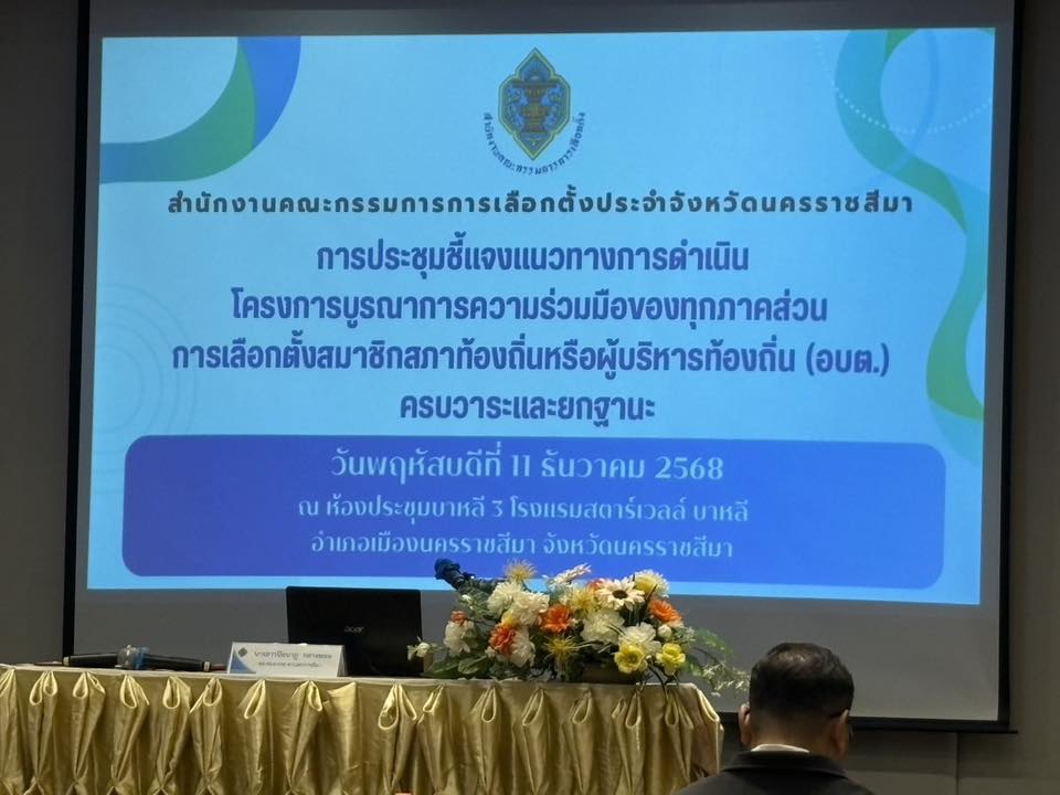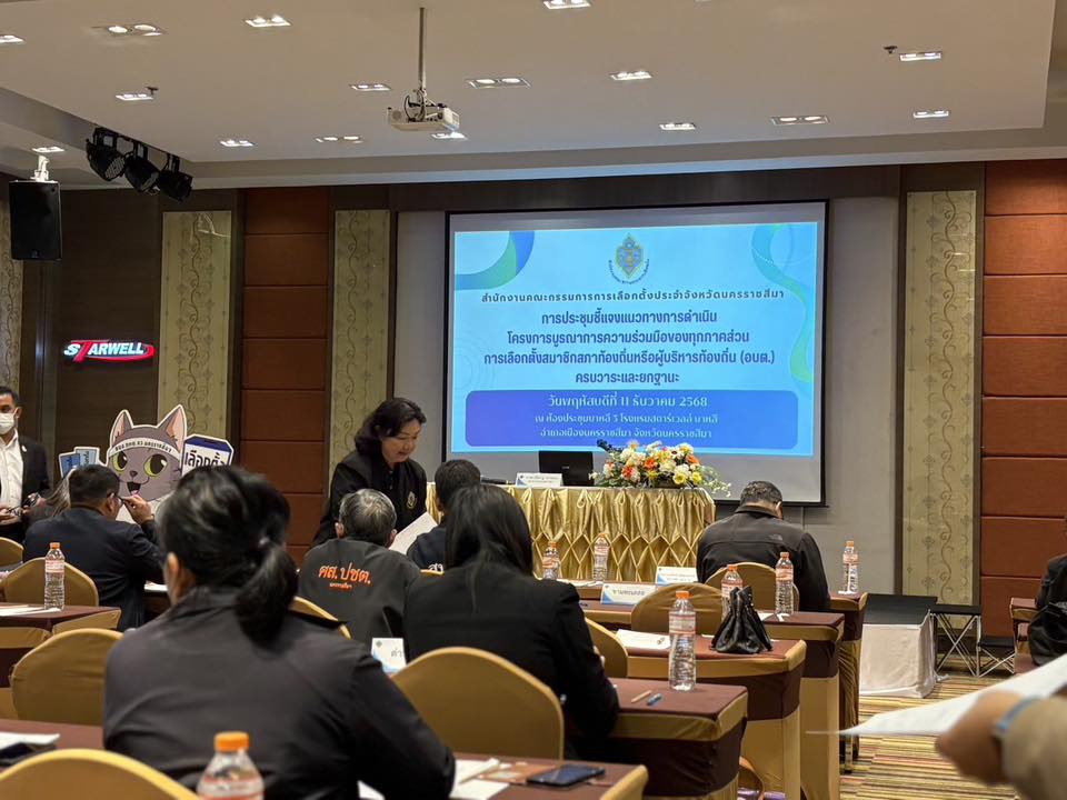 วันที่ 11 ธันวาคม 2568 นายเลอพงศ์ ทับทิมแสน ผู้อำนวยการศูนย์ส่งเสริมการเรียนรู้ระดับอำเภอเมืองนครราชสีมา มอบหมายให้นายอินทัช แสนจันแดง ครู สกร.ระดับอำเภอเมืองนครราชสีมา ร่วมประชุมชี้แจ้งแนวทางการดำเนินโครงการบูรณาการความร่วมมือของทุกภาคส่วน การเลือกตั้งสมาชิกสภาท้องถิ่น หรือผู้บริหารท้องถิ่น (อบต.) ครบวาระและยกฐานะ ณ ห้องประชุมบาหลี 3 โรงแรมสตาร์เวล บาหลี นครราชสีมา เพื่อวางแผนการดำเนินกิจกรรมรณรงค์เผยแพร่และประชาสัมพันธ์การเลือกตั้งสมาชิกสภาองค์การบริหารส่วนตำบล และนายกองค์การบริหารส่วนตำบล
