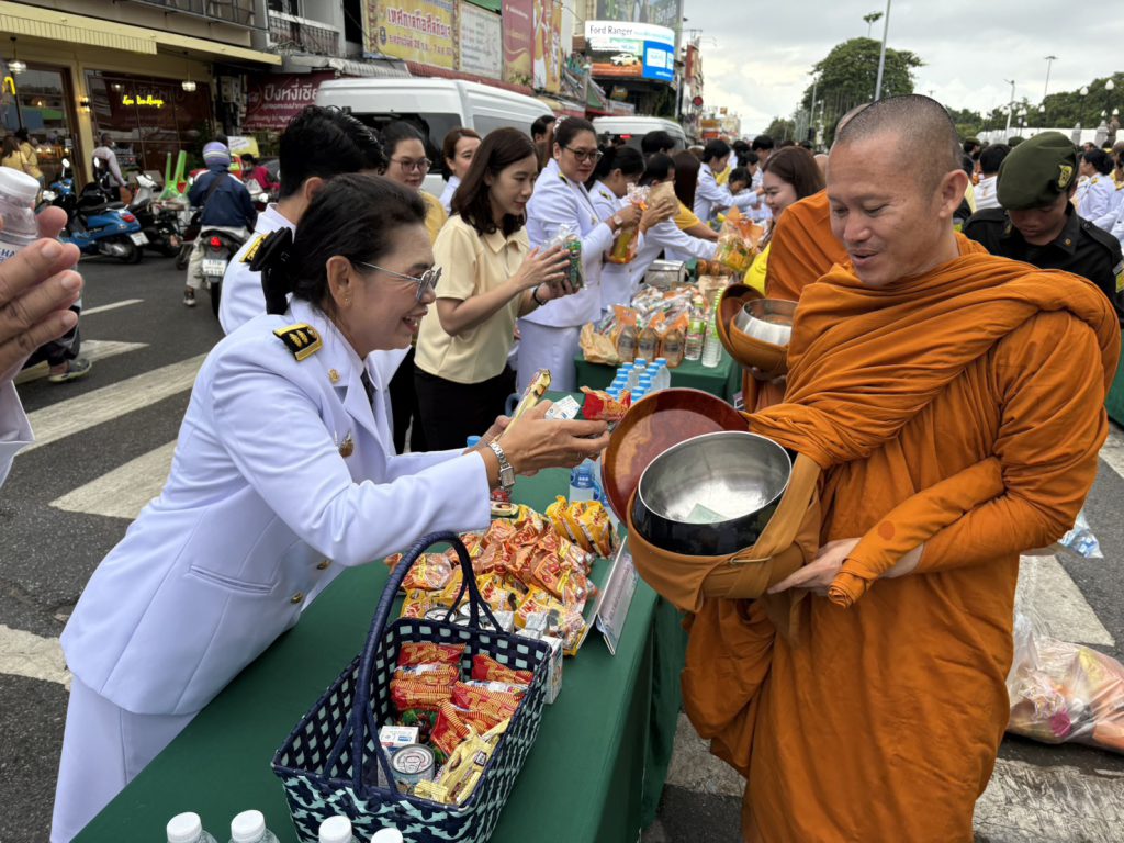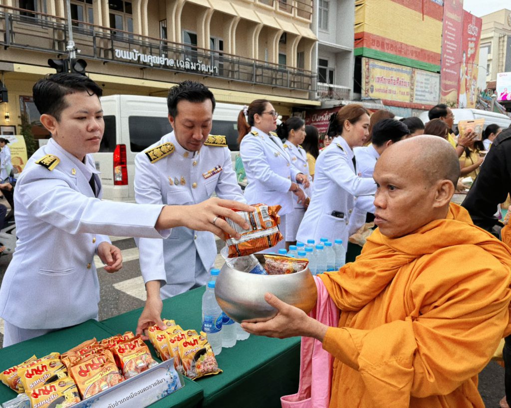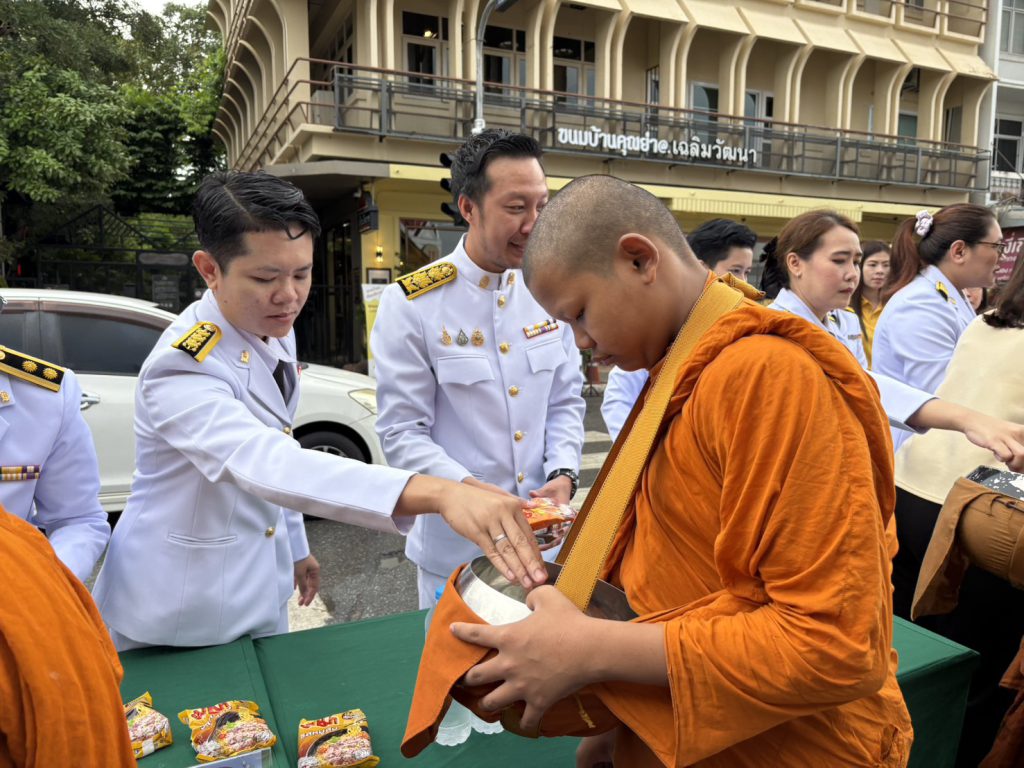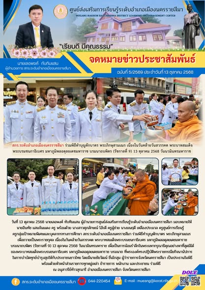 วันที่ 13 ตุลาคม 2568 นายเลอพงศ์ ทับทิมแสน ผู้อำนวยการศูนย์ส่งเสริมการเรียนรู้ระดับอำเภอเมืองนครราชสีมา มอบหมายให้นายอินทัช แสนจันแเดง ครู พร้อมด้วย นางสาวศุภลักษณ์ โฮ๊ะดี ครูผู้ช่วย นางมนฤดี เหลืองประมวล ครูศูนย์การเรียนรู้ครูกลุ่มเป้าหมายพิเศษและบุคลากรทางการศึกษา สกร.ระดับอำเภอเมืองนครราชสีมา ร่วมพิธีทำบุญตักบาตร พระภิกษุสามเณรเพื่อถวายเป็นพระราชกุศล เนื่องในวันคล้ายวันสวรรคต พระบาทสมเด็จพระบรมชนกาธิเบศร มหาภูมิพลอดุลยเดชมหาราชบรมนาถบพิตร (รัชกาลที่ 9) 13 ตุลาคม 2568 วันนวมินทรมหาราช เพื่อเป็นการน้อมรำลึกในพระมหากรุณาธิคุณอย่างหาที่สุดมิได้ของพระบาทสมเด็จพระบรมชนกาธิเบศร มหาภูมิพลอดุลยเดชมหาราช บรมนาถ ที่พระองค์ทรงปฏิบัติพระราชกรณียกิจนานัปการในการบำบัดทุกข์บำรุงสุขให้กับประชาชนชาวไทย โดยมีนายชัยวัฒน์ ชื่นโกสุม ผู้ว่าราชการจังหวัดนครราชสีมา เป็นประธานในพิธี พร้อมด้วยหัวหน้าส่วนราชการทุกหมู่เหล่า ข้าราชการ พนักงาน และประชาชน ร่วมพิธี ณ อนุสาวรีย์ท้าวสุรนารี อำเภอเมืองนครราชสีมา จังหวัดนครราชสีมา