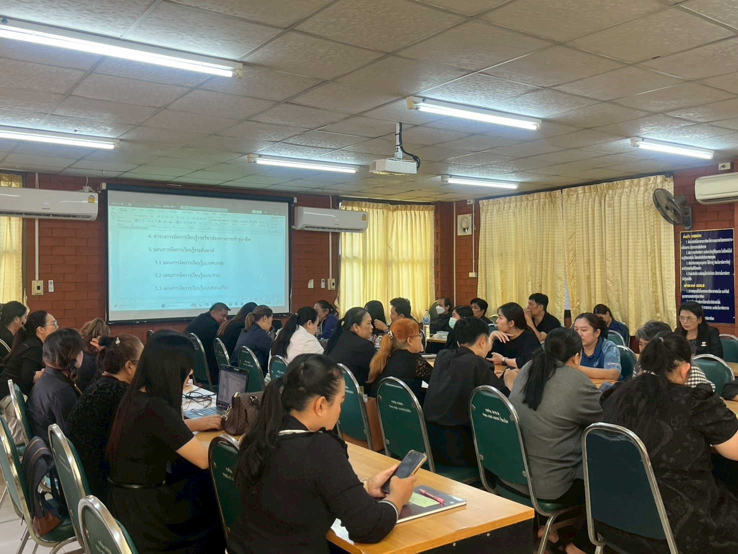 วันที่ 4 พฤศจิกายน 2568 ศูนย์ส่งเสริมการเรียนรู้ระดับอำเภอเมืองนครราชสีมา จัดโครงการประชุมเชิงปฏิบัติการสรุปผลการดำเนินงานและการจัดทำรายงานการประเมินตนเอง (SAR) ประจำปีงบประมาณ พ.ศ.2568 ของศูนย์ส่งเสริมการเรียนรู้ระดับอำเภอเมืองนครราชสีมา กิจกรรมการประชุมเชิงปฏิบัติการจัดทำรายงานการประเมินตนเองของสถานศึกษา ประจำปีงบประมาณ พ.ศ.2568 โดยมีนางสาวภมร ฐปนกุลณ์ ครูศูนย์การเรียนรู้ และคณะฯ เป็นวิทยากร บรรยายในหัวข้อเรื่องการจัดทำข้อมูลพื้นฐานของสถานศึกษาและแบ่งกลุ่มการเขียนคำอธิบายเกณฑ์ พิจารณา และระดับคุณภาพมาตรฐานการศึกษาสำหรับสถานศึกษาที่จัดการเรียนรู้ตลอดชีวิต การเรียนรู้เพื่อพัฒนาตนเอง การเรียนรู้เพื่อคุณวุฒิตามระดับ และแบ่งกลุ่มการจัดทำข้อมูลพื้นฐานของสถาน โดยมีกลุ่มเป้าหมายเป็นบุคลากร สกร.ระดับอำเภอเมืองนครราชสีมา จำนวน 60 คน ณ ห้องประชุมเอื้องฟ้าศูนย์ส่งเสริมการเรียนรู้ระดับอำเภอเมืองนครราชสีมา จังหวัดนครราชสีมา
