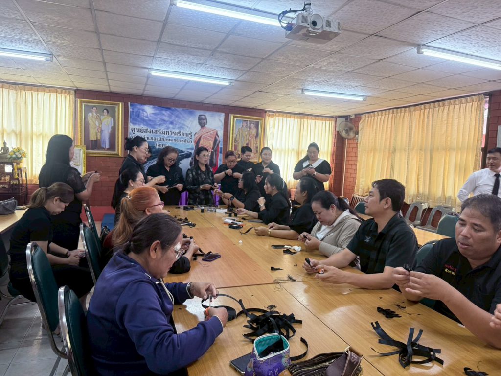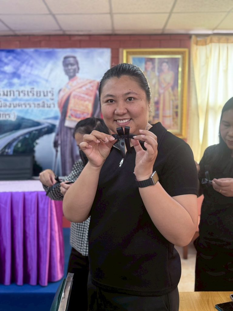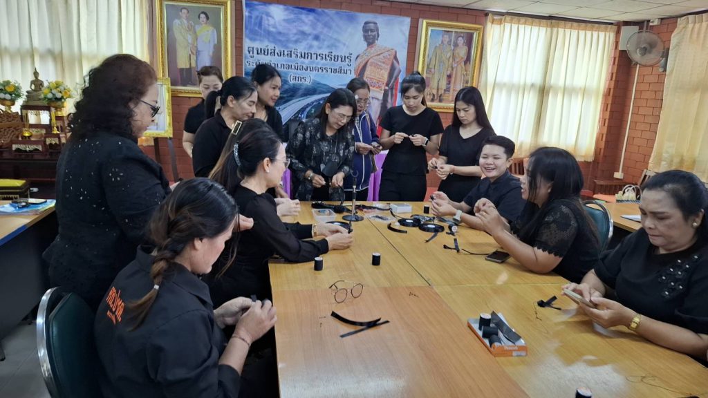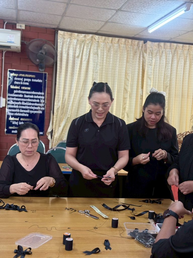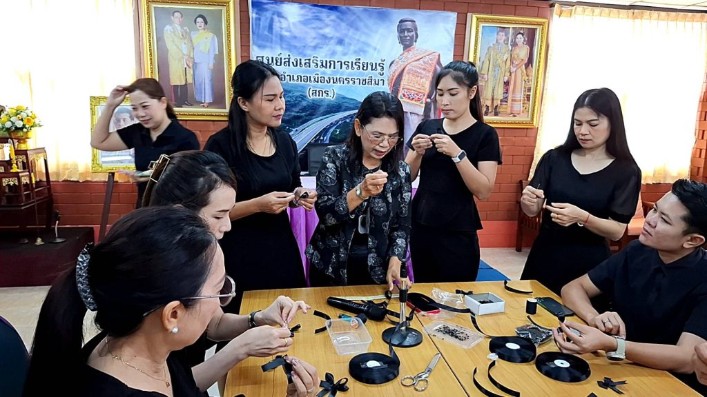 วันที่ 28 ตุลาคม 2568 นายเลอพงศ์ ทับทิมแสน ผู้อำนวยการศูนย์ส่งเสริมการเรียนรู้ระดับอำเภอเมืองนครราชสีมาพร้อมด้วยข้าราชการครู ครูศูนย์การเรียนรู้ และบุคลากรทางการศึกษา เปิดการสอนประดิษฐ์โบว์ไว้อาลัยและแจกจ่ายให้กับนักศึกษาและประชาชนโดยไม่เสียค่าใช้จ่าย เพื่อน้อมถวายความอาลัยด้วยสำนึกในพระมหากรุณาธิคุณอย่างหาที่สุดมิได้แด่สมเด็จพระนางเจ้าสิริกิติ์ พระบรมราชินีนาถ พระบรมราชชนนีพันปีหลวง เป็นเครื่องหมายแสดงความอาลัยณ ห้องประชุมเอื้องฟ้า ศูนย์ส่งเสริมการเรียนรู้ระดับอำเภอเมืองนครราชสีมา อำเภอเมืองนครราชสีมา จังหวัดนครราชสีมา