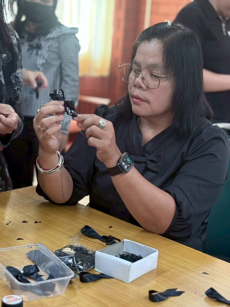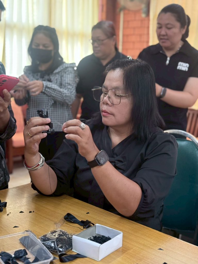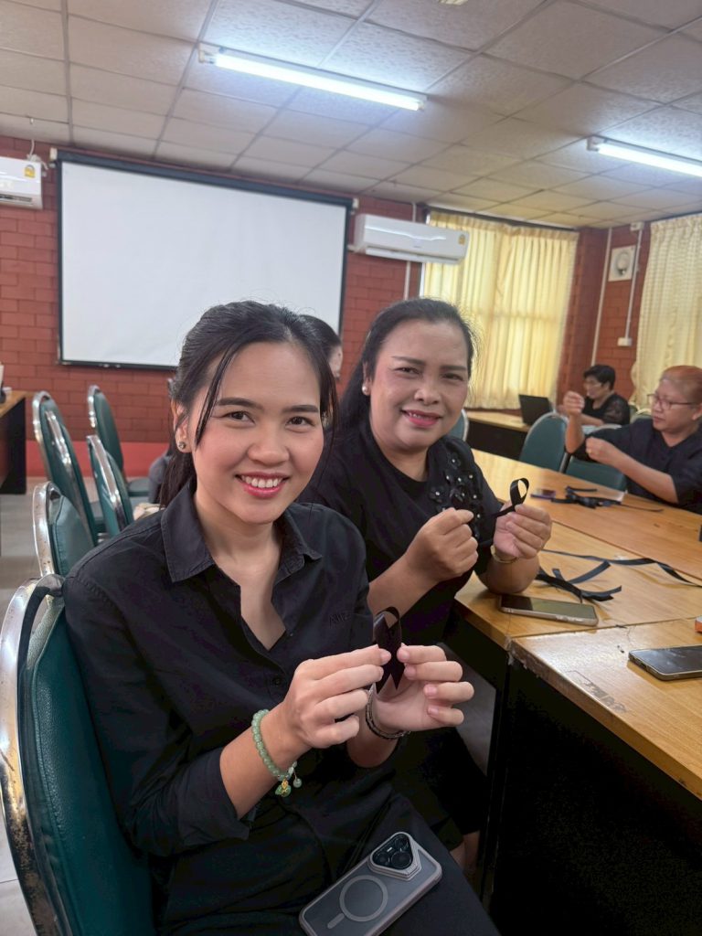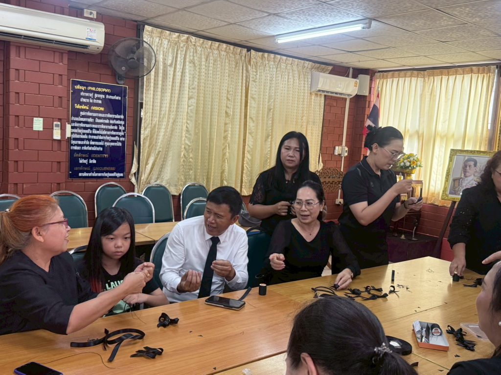 วันที่ 28 ตุลาคม 2568 นายเลอพงศ์ ทับทิมแสน ผู้อำนวยการศูนย์ส่งเสริมการเรียนรู้ระดับอำเภอเมืองนครราชสีมาพร้อมด้วยข้าราชการครู ครูศูนย์การเรียนรู้ และบุคลากรทางการศึกษา เปิดการสอนประดิษฐ์โบว์ไว้อาลัยและแจกจ่ายให้กับนักศึกษาและประชาชนโดยไม่เสียค่าใช้จ่าย เพื่อน้อมถวายความอาลัยด้วยสำนึกในพระมหากรุณาธิคุณอย่างหาที่สุดมิได้แด่สมเด็จพระนางเจ้าสิริกิติ์ พระบรมราชินีนาถ พระบรมราชชนนีพันปีหลวง เป็นเครื่องหมายแสดงความอาลัยณ ห้องประชุมเอื้องฟ้า ศูนย์ส่งเสริมการเรียนรู้ระดับอำเภอเมืองนครราชสีมา อำเภอเมืองนครราชสีมา จังหวัดนครราชสีมา