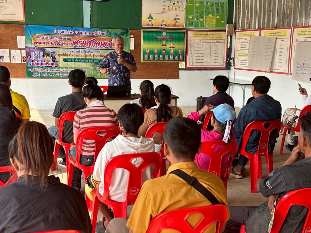 วันอังคารที่ 20 มกราคม 2569 นายคมพิสิษฐ์ ดังไธสงฆ์ ผู้อำนวยการศูนย์ ส่งเสริมการเรียนรู้ระดับอำเภอโนนสูง มอบหมายให้กลุ่มศูนย์ริมมูล ประกอบด้วย ศกร.ระดับตำบลโตนด ศกร.ระดับตำบลบิง ศกร.ระดับตำบลดอนชมพู และ ศกร.ระดับตำบลลำมูล จัดกิจกรรมโครงการพัฒนาคุณภาพ ผู้เรียน กิจกรรมศึกษาแหล่งเรียนรู้ตามหลักปรัชญาของเศรษฐกิจพอเพียง ภาคเรียนที่ 2 ปีการศึกษา 2568 ศูนย์ส่งเสริมการเรียนรู้ระดับอำเภอโนนสูง ณ ศูนย์เรียนรู้เศรษฐกิจพอเพียงบ้านโนนด่าน (ศูนย์ชุมชนข้าว) หมู่ที่ 11 ตำบลโตนด อำเภอโนนสูง จังหวัดนครราชสีมา โดยมีนายเกษม บาตรโพธิ์ เป็นวิทยากรให้ความรู้
