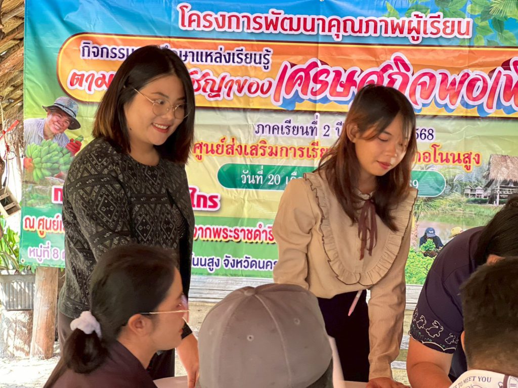 วันอังคารที่ 20 มกราคม 2569 นายคมพิสิษฐ์ ดังไธสงฆ์ ผู้อำนวยการศูนย์ส่งเสริมการเรียนรู้ระดับอำเภอโนนสูง ได้มอบหมายให้ นางสาวหทัยชนก สิริสกุลรุ่งเรือง ครู นิเทศการจัดกิจกรรมตามโครงการพัฒนาคุณภาพผู้เรียนกิจกรรมศึกษาแหล่งเรียนรู้ตามหลักปรัชญาของเศรษฐกิจพอเพียง ภาคเรียนที่ 2 ปีการศึกษา 2568 สกร.ระดับอำเภอโนนสูง กลุ่มศูนย์ลำเชียงไกร ณ ศูนย์เรียนรู้โครงการอันเนื่องมาจากพระราชดำริบ้านโนนตากลาง ตำบลเมืองปราสาท อำเภอโนนสูง จังหวัดนครราชสีมา