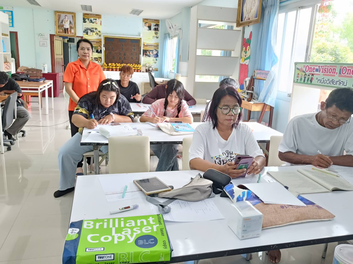 ครูสุธาศิณี ช้างศรี ครูศูนย์การเรียนรู้ระดับตำบลจันทึก จัดการเรียนการสอนแบบพบกลุ่ม (on-site) รายวิชาวิทยาศาสตร์ ให้กับนักศึกษา ทั้ง 3 ระดับ มอบหมายให้นักศึกษาทำใบงานภายในชั้นเรียน โดยค้นคว้าจากแหล่งเรียบรู้และ Internet ของ ศกระระดับตำบลจันทึก