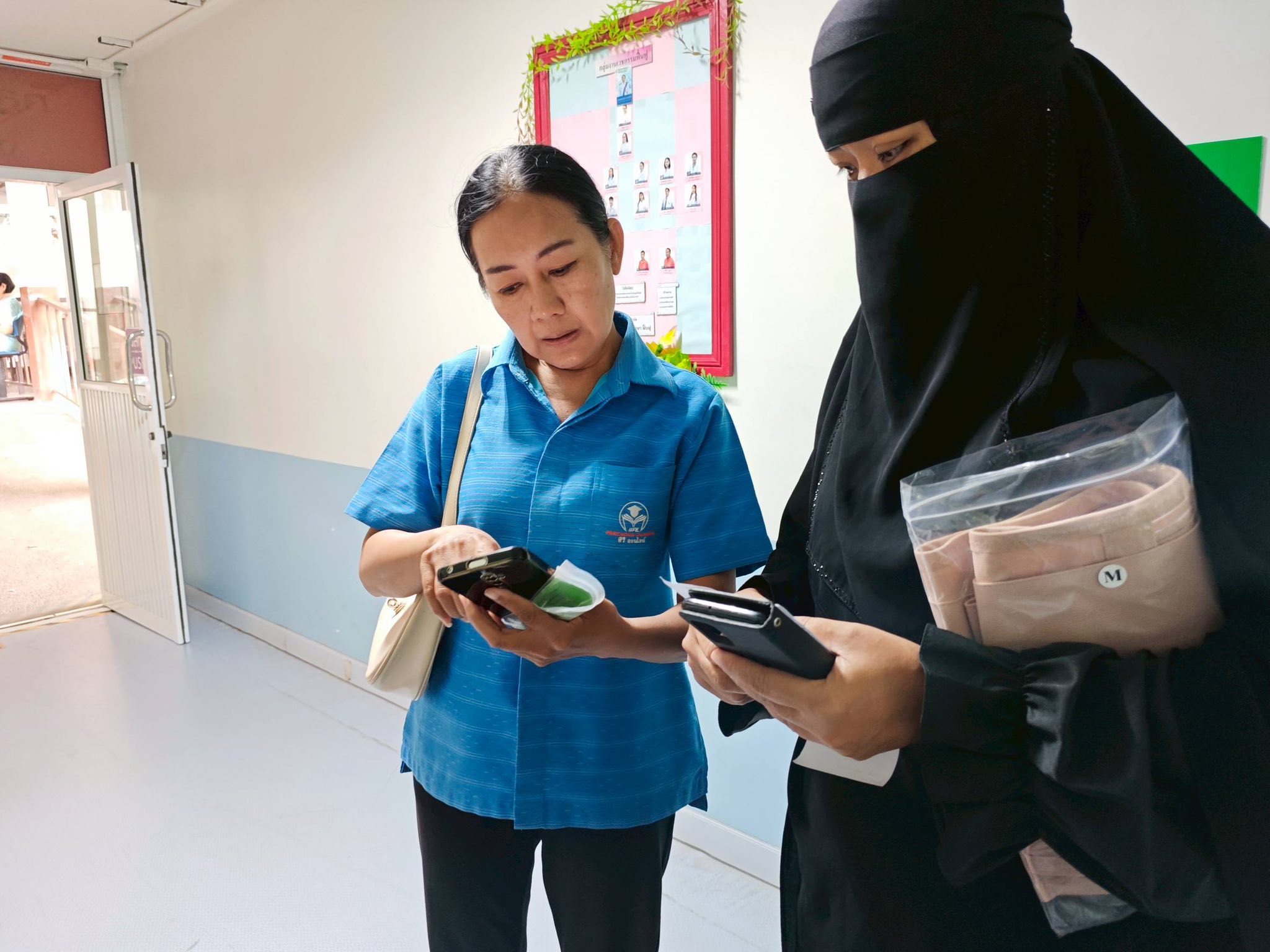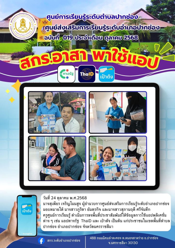 นางสาวภูริตา ยันตรกิจ และนางสาวสุภานฤดี ศรีจันทึก ครูศูนย์การเรียนรู้ ดำเนินการลงพื้นที่ประชาสัมพันธ์ให้ข้อมูลการใช้แอปพลิเคชั่นต่าง ๆ เช่น แอปทางรัฐ ThaiD และ เป๋าตัง เป็นต้น แก่ประชาชนในเขตพื้นที่ตำบลปากช่อง อำเภอปากช่อง จังหวัดนครราชสีมา