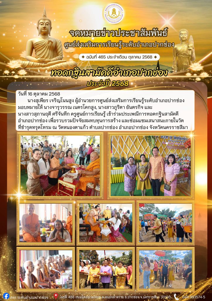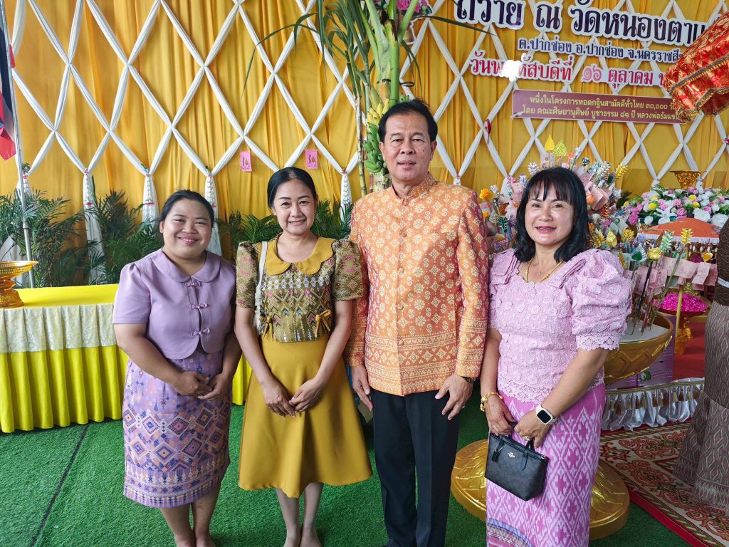 นางจารุวรรณ เนตรโคกสูง, นางสาวภูริตา ยันตรกิจ และนางสาวสุภานฤดี ศรีจันทึก ครูศูนย์การเรียนรู้ เข้าร่วมประเพณีการทอดกฐินสามัคคีอำเภอปากช่อง เพื่อรวบรวมปัจจัยสมทบทุนการสร้าง และซ่อมแซมเสนาสนะภายในวัดที่ชำรุดทรุดโทรม ณ วัดหนองตาแก้ว ตำบลปากช่อง อำเภอปากช่อง จังหวัดนครราชสีมา