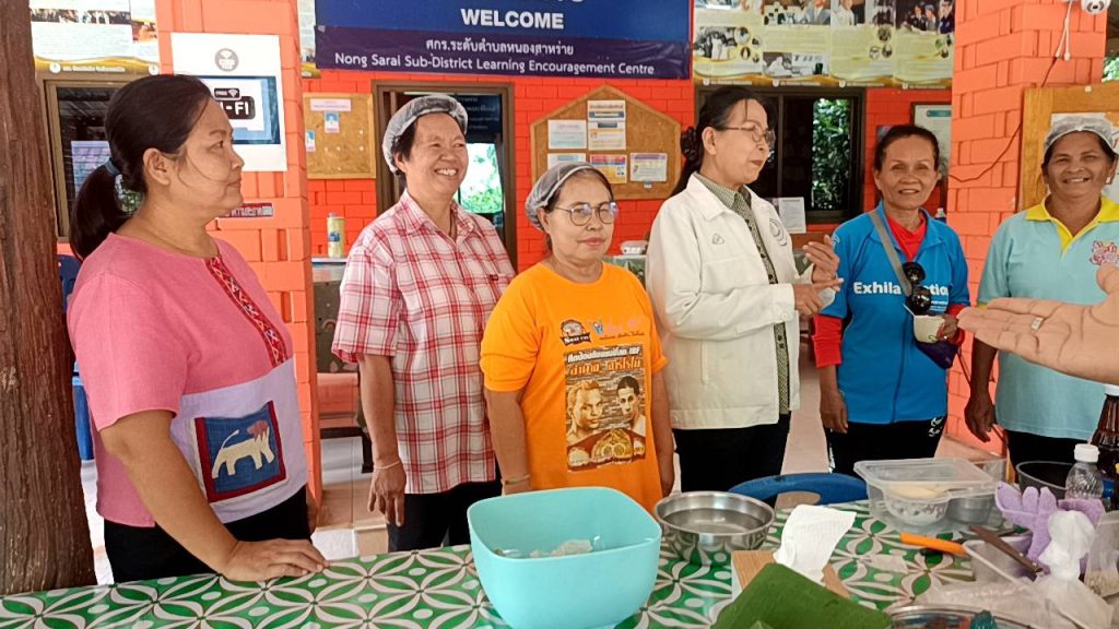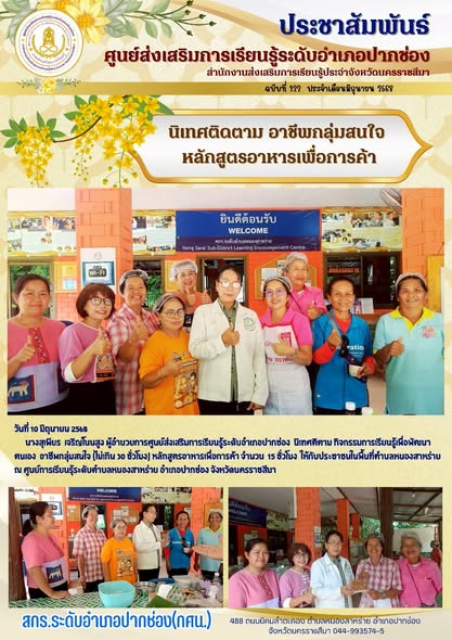 นางสุเพียร เจริญโนนสูง ผู้อำนวยการศูนย์ส่งเสริมการเรียนรู้ระดับอำเภอปากช่อง นิเทศติตาม กิจกรรมการเรียนรู้เพื่อพัฒนาตนเอง อาชีพกลุ่มสนใจ (ไม่เกิน 30 ชั่วโมง) หลักสูตรอาหารเพื่อการค้า จำนวน 15 ชั่วโมง ให้กับประชาชนในพื้นที่ตำบลหนองสาหร่าย ณ ศูนย์การเรียนรุ้ระดับตำบลหนองสาหร่าย อำเภอปากช่อง จังหวัดนครราชสีมา