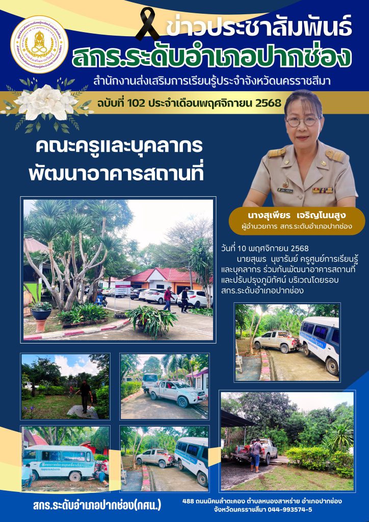 นายสุพร นุชารัมย์ ครูศูนย์การเรียนรู้ และบุคลากร ร่วมกันพัฒนาอาคารสถานที่ และปรับปรุงภูมิทัศน์ บริเวณโดยรอบ สกร.ระดับอำเภอปากช่อง