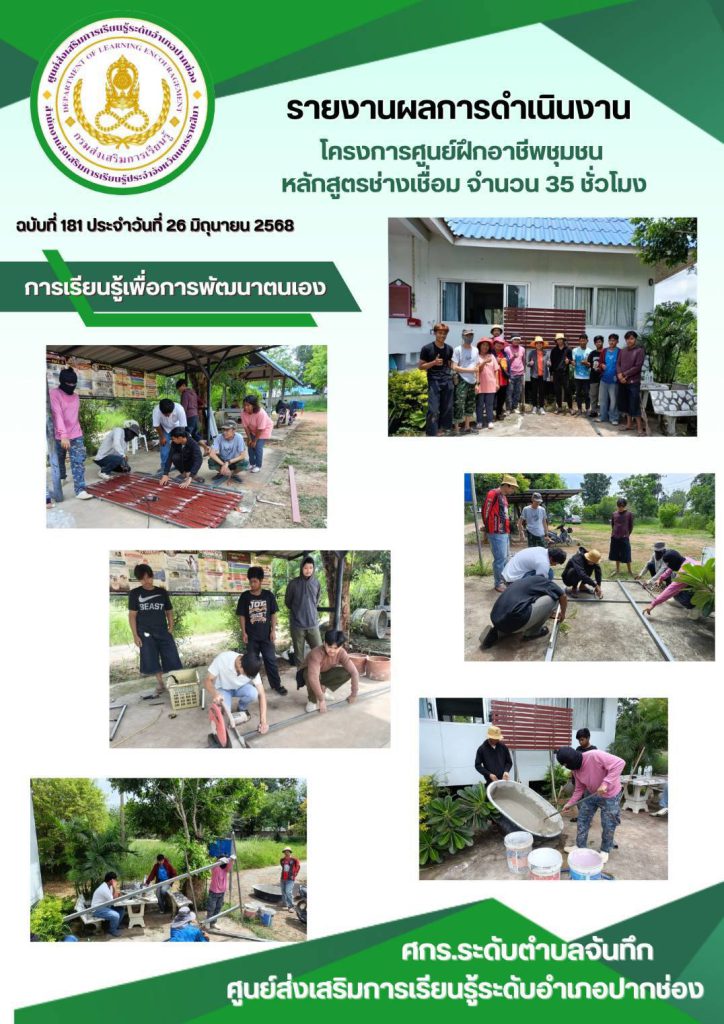 ศูนย์การเรียนรู้ระดับตำบลจันทึก ได้ดำเนินการจัดการศึกษาต่อเนื่องรูปแบบการศึกษาวิชาชีพ หลักสูตรช่างเชื่อม จำนวน 35 ชั่วโมง ให้กับประชาชนตำบลจันทึก ณ ศูนย์การเรียนรู้ระดับตำบลจันทึก ตำบลจันทึก อำเภอปากช่อง จังหวัดนครราชสีมา