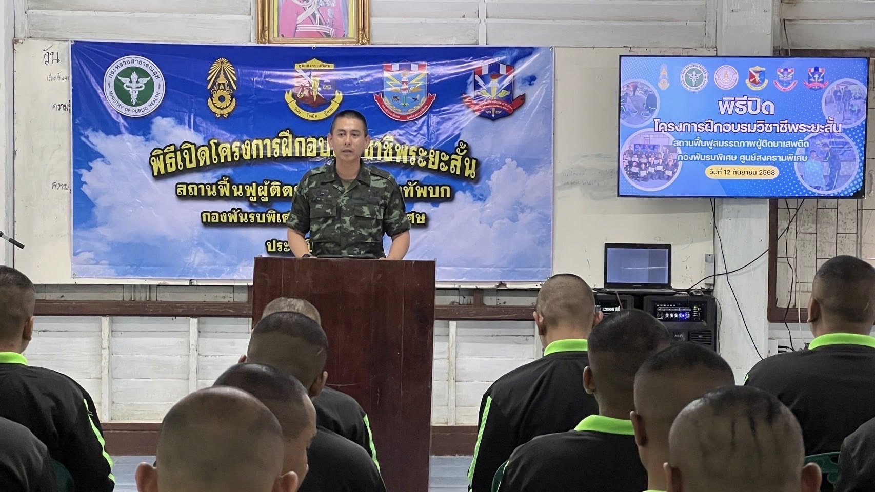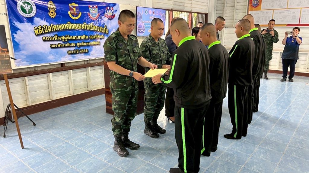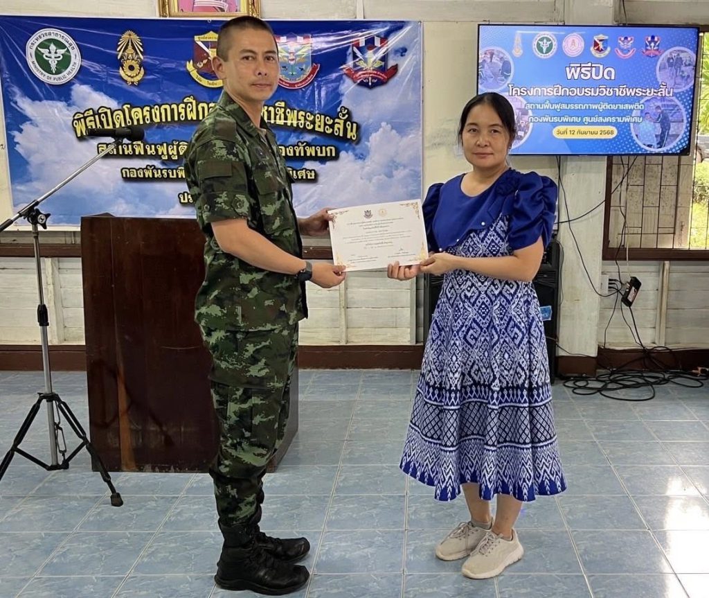นางสุเพียร เจริญโนนสูง ผู้อำนวยการ สกร.ระดับอำเภอปากช่อง มอบหมายให้ นางจารุวรรณ เนตรโคกสูง ครูศูนย์การเรียนรู้ พร้อมด้วยคณะครู ศกร.ระดับตำบลวังกะทะ เป็นผู้แทนในการมอบวุฒิบัตรผ่านการฝึกอบรม ให้กับผู้เข้ารับการบำบัดฟื้นฟูสมรรถภาพผู้ติดยาเสพติด ตามโครงการฝึกอบรมวิชาชีพระยะสั้น สถานฟื้นฟูผู้ติดยาเสพติด กองทัพบก กองพันรบพิเศษ ศูนย์สงครามพิเศษ ประจำปี 2568