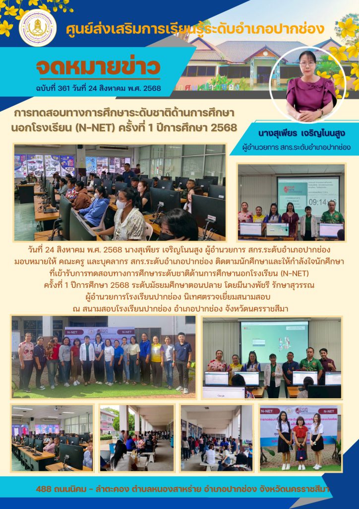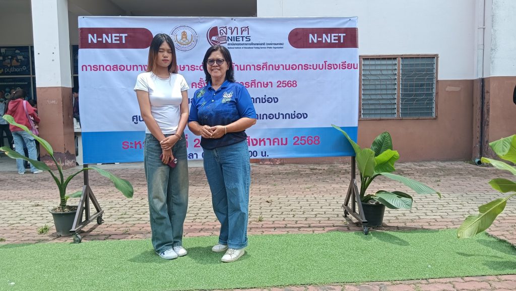 วันที่ 24 สิงหาคม พ.ศ. 2568 ครู ศกร.ตำบลโป่งตาลอง นำนักศึกษาเข้ารับการทดสอบทางการศึกษาระดับชาติด้านการศึกษานอกโรงเรียน (N-NET) ครั้งที่ 1 ปีการศึกษา 2568 ระดับมัธยมศึกษาตอนปลาย โดยมีนางพัชรี รักษาสุวรรณ ผู้อำนวยการโรงเรียนปากช่อง นิเทศตรวจเยี่ยมสนามสอบ ณ สนามสอบโรงเรียนปากช่อง อำเภอปากช่อง จังหวัดนครราชสีมา