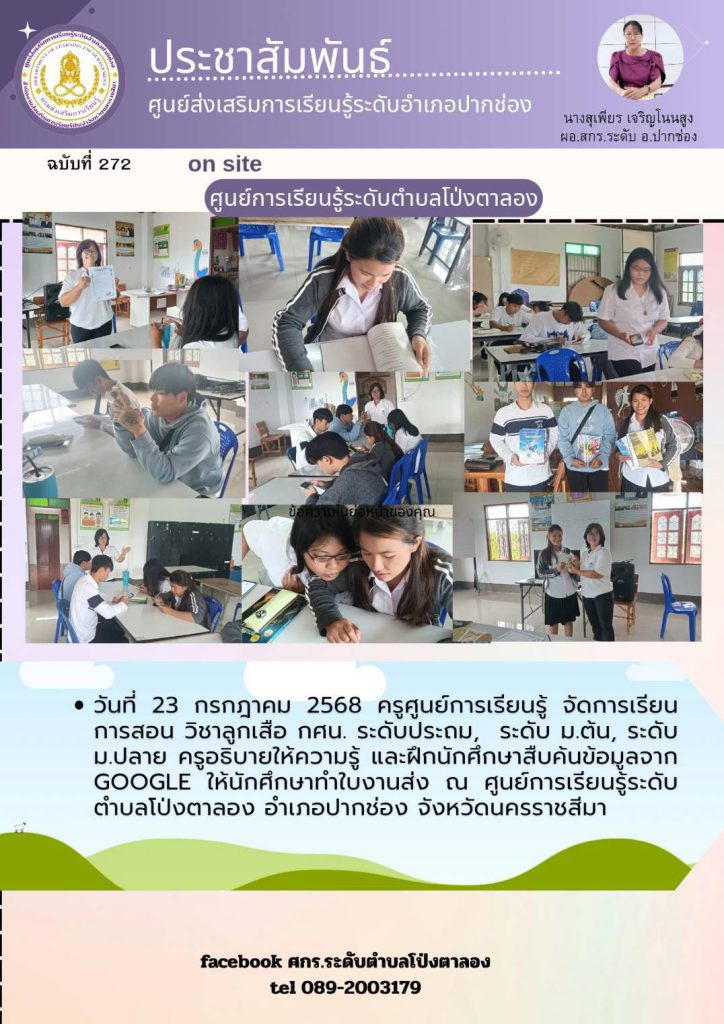 วันที่ 23 กรกฎาคม 2568 ครูศูนย์การเรียนรู้ จัดการเรียนการสอน ณ ศูนย์การเรียนรู้ระดับตำบลโป่งตาลอง